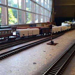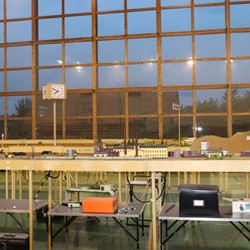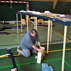 Pár minut po desáté hodině se otevírají dveře prosklené haly ozářené sluníčkem a vchodem se začínají hrnout první moduly. Před vchod přijíždějí další a další dodávky, otevřenými dveřmi proudí další a další moduly a stanice. Slunce se posunuje po obloze a pruhované stíny se posouvají po vyrůstajícím layoutu. Moduly se rojí, postavené na nohou, jako houby po dešti. Přes veškerou snahu se nám vlivem několika komplikací daří započít provoz až kolem desáté hodiny ranní následujícího dne.