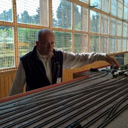 Zbývá nám už jen úzká… Uzoučké koleje na uzoučkých modulech s malými vagónky, co svou titěrností vyrážejí dech. Celá větev těchto titěrností byla napojena na normálně rozchodné moduly prostřednictvím Lomu P. Bezruče, na kterém je péče majitele čím dál znatelnější. Z Lomu už můžeme sledovat železniční trasu vinoucí se přes most do Dětřichova, dále do Benešova nad Lipou, Bohušova a do Pacovy Hory až k osamocené lampě napájené svou vlastní baterkou. Jemně vymodelovaná krajinka a úzké, do detailů vymazlené lokomotivy a vagony zkrátka stojí za vidění. Kdo neviděl, jeho smůla.