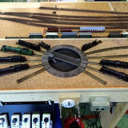 Čerstvě dohotovené kolejiště výtopny prošlo, jak už je dobrým zvykem, před jakýmikoli dalšími krajinářskými úpravami nejdříve zkouškou právě tohoto provozního setkání, což se vyplatilo, protože přes domácí zkoušky se objevily dvě drobné závady – opomenuté napájení velmi krátké kolejové spojky mezi dvěma výhybkami, tak krátké, že i 310.0 projela, ale samozřejmě bude napájení doplněno, a dielektricky příliš malá mezera mezi výhybkou č. V4 a kolejnicí koleje 203., takže když se kolejnice pod sluníčkem ohřála a roztáhla se, na zkrat a půldruhaminutové zastavení času, než se závadu podařilo najít a odstranit, bylo zaděláno.