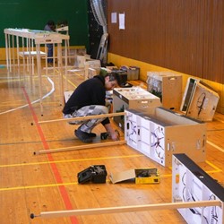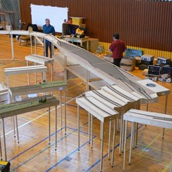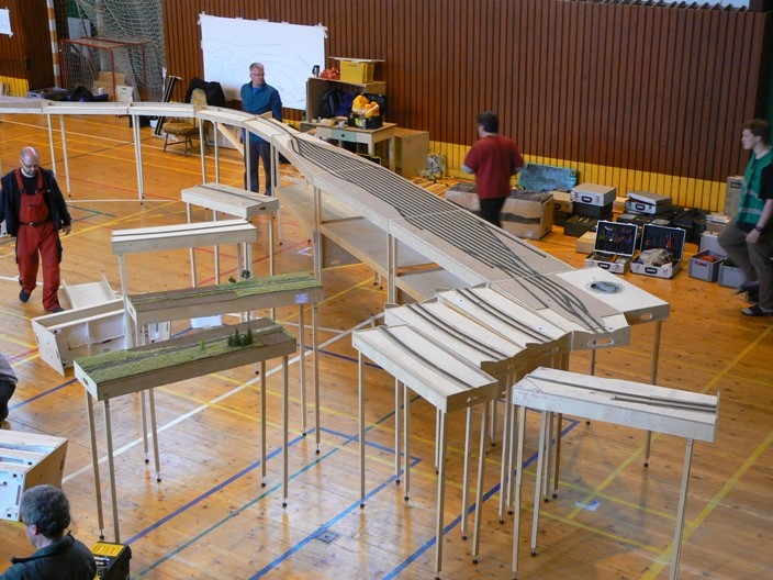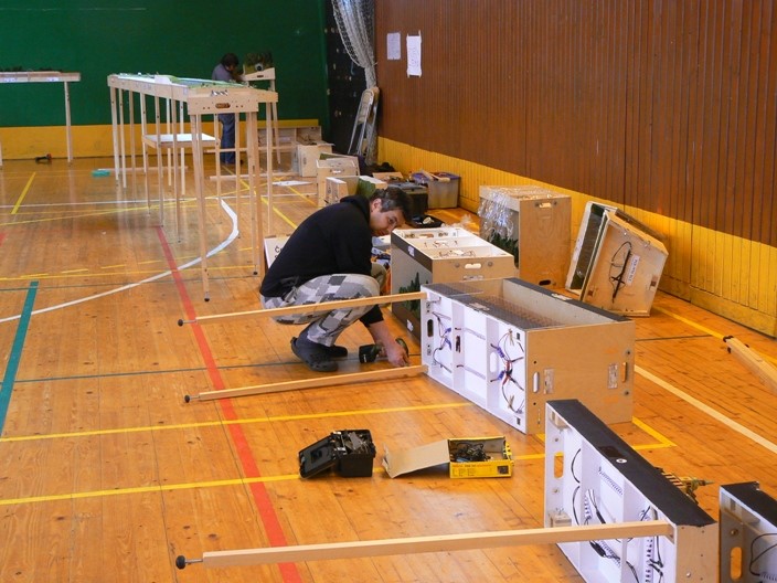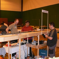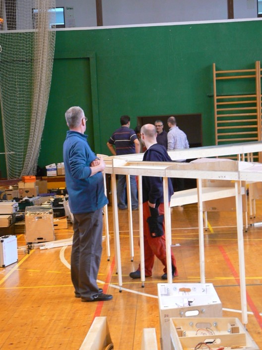 Stavba layoutu a příprava provozu se nepříjemně protáhly kvůli menšímu počtu účastníků, než bylo plánováno, na poslední chvíli totiž mezi námi řádila chřipka a požadavky zaměstnavatelů. Rovněž zjištění, že rohy haly nesvírají pravý úhel, nepřispělo ke správné orientaci layoutu na první pokus. Ale nakonec všechno dobře dopadlo, a tak ve čtvrtek ve čtyři hodiny odpoledne jsme mohli zahájit provoz.