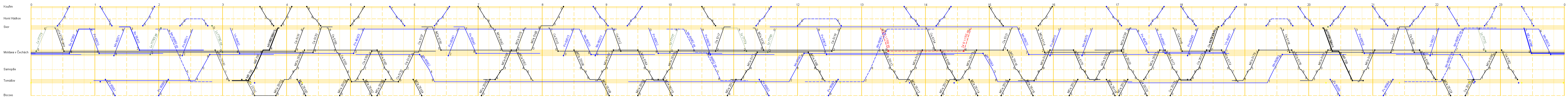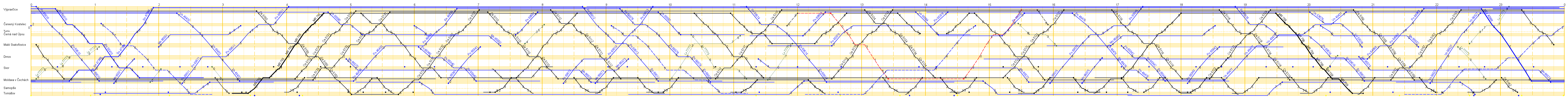 Grafikon obsahoval i rušící vlak a nutno uznat, že výpravčí se s touto nezvyklou dopravní situací vypořádali velmi dobře. V příloze této reportáže jsou i tabulky NJŘ jednotlivých tratí.