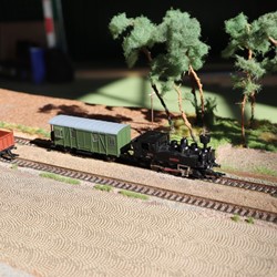 Zbývá nám už jen úzká… Uzoučké koleje na uzoučkých modulech s malými vagónky, co svou titěrností vyrážejí dech. Celá větev těchto titěrností byla napojena na normálně rozchodné moduly prostřednictvím Lomu P. Bezruče, na kterém je péče majitele čím dál znatelnější. Z Lomu už můžeme sledovat železniční trasu vinoucí se přes most do Dětřichova, dále do Benešova nad Lipou, Bohušova a do Pacovy Hory až k osamocené lampě napájené svou vlastní baterkou. Jemně vymodelovaná krajinka a úzké, do detailů vymazlené lokomotivy a vagony zkrátka stojí za vidění. Kdo neviděl, jeho smůla.