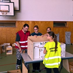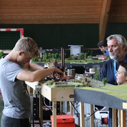 Pár minut po desáté hodině se otevírají dveře prosklené haly ozářené sluníčkem a vchodem se začínají hrnout první moduly. Před vchod přijíždějí další a další dodávky, otevřenými dveřmi proudí další a další moduly a stanice. Slunce se posunuje po obloze a pruhované stíny se posouvají po vyrůstajícím layoutu. Moduly se rojí, postavené na nohou, jako houby po dešti. Přes veškerou snahu se nám vlivem několika komplikací daří započít provoz až kolem desáté hodiny ranní následujícího dne.