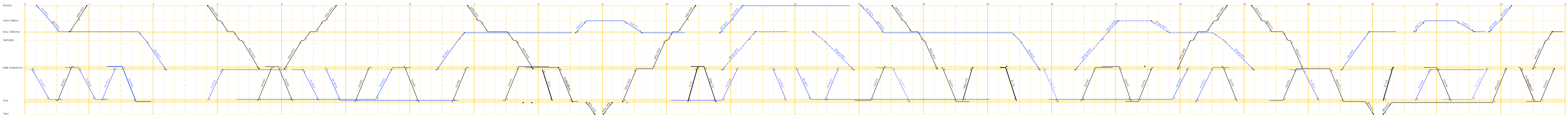 V Černé byl popůlnoční čas dobou poslední osobní „šessetdvojky“ čili flamendráku, který dovezl pospávající cestující před půldruhou v noci na svou konečnou do Výpravčic, několika křižování průběžných nákladních vlaků včetně přímé přepravy uhlí a přetahu svatoňovické zátěže a také odvěšení a posun spěšninového vozu od ranní rakety. Posun se pochopitelně neděje pomocí žádné místní zálohy, nýbrž lokomotivy od křižujícího manipulačního vlaku, jako tomu bylo i ve skutečnosti. Proto dopravně zdánlivě jednoduchá doba popůlnoční byla v letošním podzimním setkání náročná na přesnost po sobě následujících křižování, aby se případné zpoždění nepřenášelo dál po jednokolejné trati.