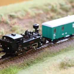Výtopna už skýtala utěšenou podívanou: pravidelně se střídající dvě 464.0 vedle 387.0 a několika 555.1, k tomu 377.05 ve dvou provedeních (Roco a Tillig) a 324.3 s 310.0, za nimi řada „dřeváků“ na dezinfekční koleji spolu s odstavenou M 262.0 – od doby před několika lety, kdy jsme v nouzi za bardotkou tahali pruské oddílové vozy, se kolegům podařilo vybudovat obdivuhodný park. A když jsem přes „okno dopravní kanceláře a kopec“ nahlédl do Mochova, kde byla některá z 422.0, hurvínek nebo později hektor nebo i některý z větších motoráků (M 262.0 či dokonce M 286.0) na místním lokálkovém výkonu (ve skutečném provozu si takhle na lokálku odskakovaly velké motorové vozy z hlavní trati např. na rameni Havlíčkův Brod – Humpolec) , byl to nádherný pohled.