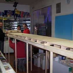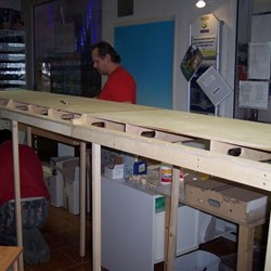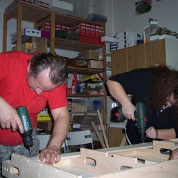 Týden opět uběhl jako voda, a je tu víkend a my pokračujeme ve stavbě modulu pro nádraží Česká Skalice. Sešli jsme se opět ve velkém počtu, abychom s pracemi řádně pokročili. Dokončujeme poslední díl nádraží, ale navíc i stavíme traťové moduly, které jsou potřebné pro běžný provoz. A kamarád Véna tvořil dva moduly tratě s chmelnicí, ale to bude jiný článek. Úspěšně dokončujeme poslední díl , ještě pár šroubků a bude hotovo. Po dokončení všech šesti dílů modulu nádraží, jsme začali sestavovat na nečisto celou Českou Skalici. Skládání probíhá bez velkých komplikací. Úsměv na tváři , dřevěné díly nádraží stojí. I dětským pomocníkům se dlouhá podbíhačka líbí. Jede vláček motoráček, jen ty koleje ještě chybi.