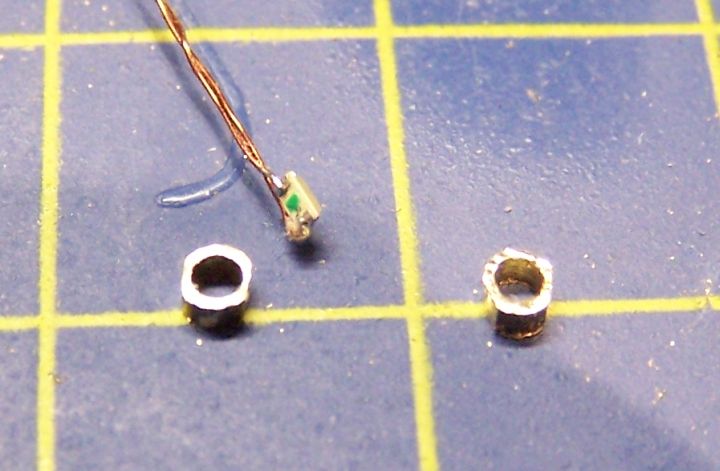 , ale ja som ho tam chcel mať. Lampáš som si vyrobil z mosadznej trubky 2,0mm a SMD bielej LED 0806. LED som zvonku prilepil sekudovým lepidlom a potom som otvor vyplnil epoxydom.