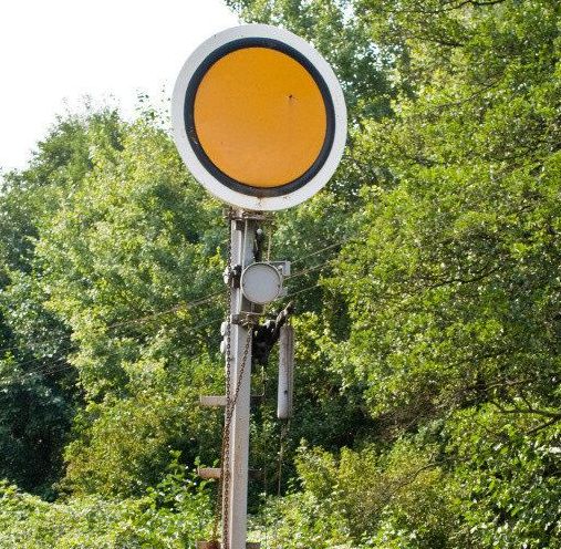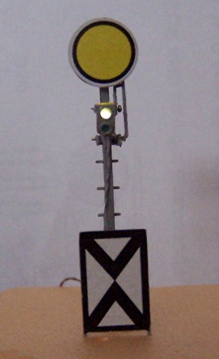 Potom som návestidlo zložil. Na volné konce osiek navliekol vyššie spomenuté podložky a konce osiek rozmačkol kliešťami. Na terčík som nalepil z priloženého aršíku vystrihnutú žltú nálepku a na plechovú tabuľu, symbol poslednej predzvesti.