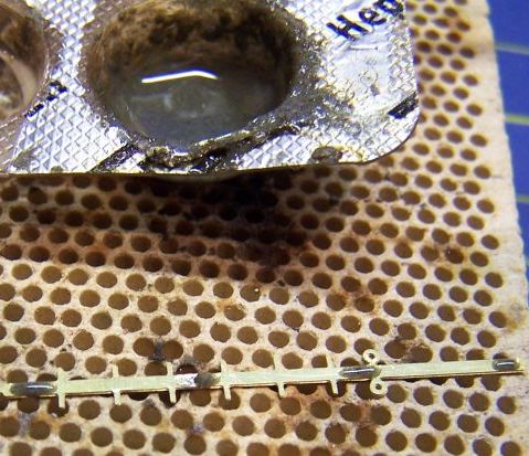 Je to leptaná mosadzná stavebnica. Skalpelom som si opatrne povyrezával diely, ktoré som hneď aj pilníkom začistil. Na pákovanie týchto stavebníc používam cínovú pastu a plynovú pájkovačku. Malé množstvo cínovej pasty ešte zmiešam s tekutinou Razant, ktorá pomáha prilnavosti cínu a po dlhšom čase skladovania, zvyčajne po 6 mesiacoch, keď zvykne pasta aj v chladničke vytuhnúť dá sa aj naďalej týmto spôsobom používať. Pastu som kúpil cez e-shop Ebay.