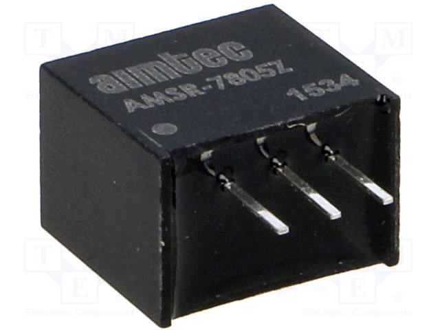 Ďalej som použil menší, lacnejší, ale aj dostupnejší 5V= DC/DC konvertor AMSR-7805. Jeho výstupný prúd je do 500mA , čo pre naše použitie úplne postačuje a vstupné napätie je 6,5 až 32V. Jeho rozmery zhruba zodpovedajú klasickému stabilizátoru 7805, ktorý je lacnejší a pri šetrnom zaobchádzaní s návestidlom by sa dal použiť aj ten ale problémom zostáva jeho výška, bolo by potrebné urezať časť chladiacej plochy a nutnosť chladenia pri častej zmene stavu návestidla, ktorá pri ovládaní návestidla najmä deťmi môže reálne nastať. Pri použitom DC konvertore tepelné záležitosti neriešime, nezohrieva sa.